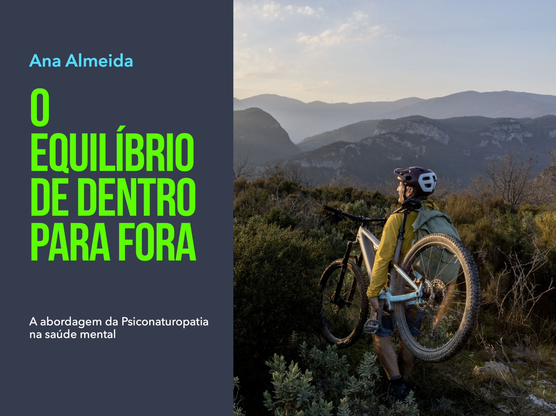 O ebook O equilíbrio de dentro para fora, é um guia sobre Psiconaturopatia da autoria da Dra. Ana Almeida, Psicóloga Clínica com mais de 30 anos de experiência como psicoterapeuta e agora especializada em Psiconaturopatia.